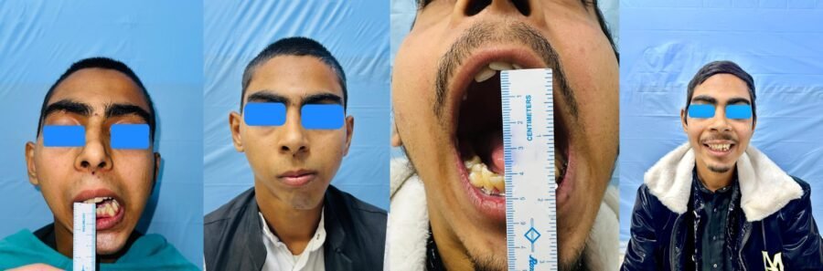 मरीज का मुंह बिल्कुल नहीं खुल रहा था। निचला जबड़ा लगभग 2 सेमी पीछे था, रैमस की ऊंचाई में 2 सेमी का अंतर था, ठोड़ी 12 मिमी बाईं ओर झुकी हुई थी, होंठ का बायां कोना 1 सेमी ऊपर उठा हुआ था तथा सामने के दांत 1 सेंटीमीटर नीचे थे । सामाजिक और मानसिक रूप से भी वह प्रभावित था।