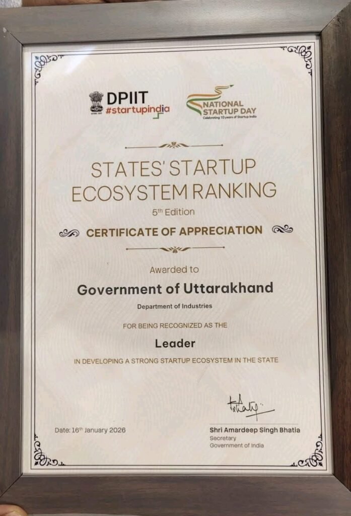 र्टअप इंडिया रैंकिंग में प्रदेश को मिला ‘लीडर’ का दर्जा, उद्योग मंत्रालय ने दी मान्यता
